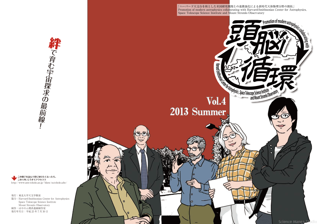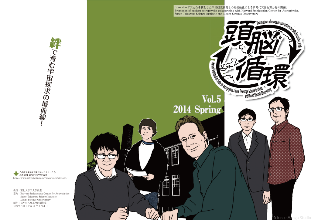 2011年~2014年に東北大学天文学教室の若手研究者のみなさんが海外の天文台等にJSPSの頭脳循環プログラムで派遣された話のニュースレターを当時作っていたんです。全部で7冊、漫画冊子があります!無料配布しているので宇宙物理学に興味のある方は見てくださいね。