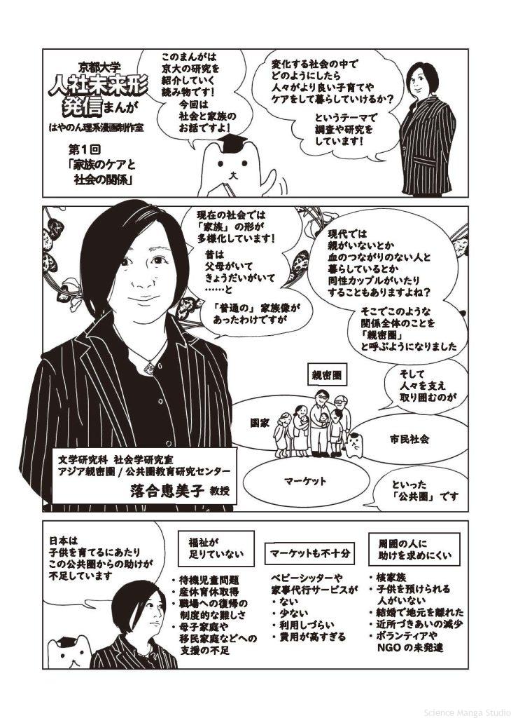 京都大学『人社未来形発信まんが』「家族のケアと社会の関係」(落合恵美子先生)漫画制作(2019)