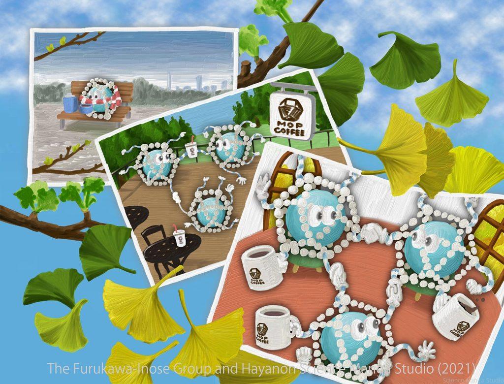京都大学iCeMS古川-猪瀬グループ @FurukawaG_Kyoto の新しい論文がChemical Science Issue 38, 2021に掲載されました。理系漫画制作室よりInside Coverを提供しています。時が経つごとにつながりを強くしていく分子くんたちの様子をイチョウの葉のうつろいとともに描きました。