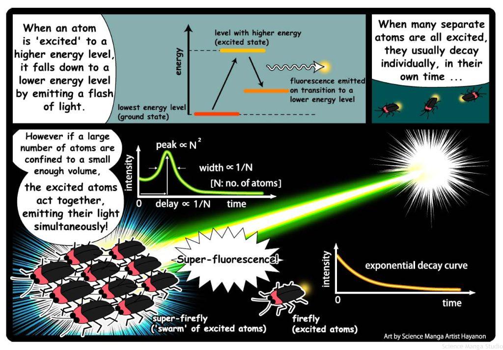 理化学研究所から発表されました「極端紫外レーザーによる「超蛍光」を初めて観測」のプレスリリース図をはやのん理系漫画制作室よりご提供しました。
