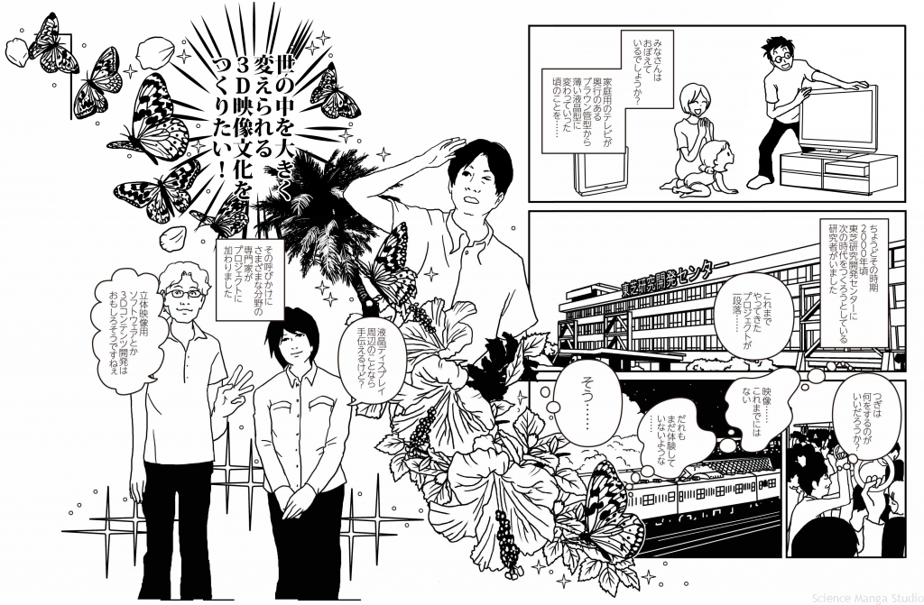 2012年7月24日(火)~11月30日(金)に開催された、東芝科学館「3Dイノベーション展」に大壁画を提供しました。はやのん理系漫画制作室のイラスト・漫画も盛大に展示されました。