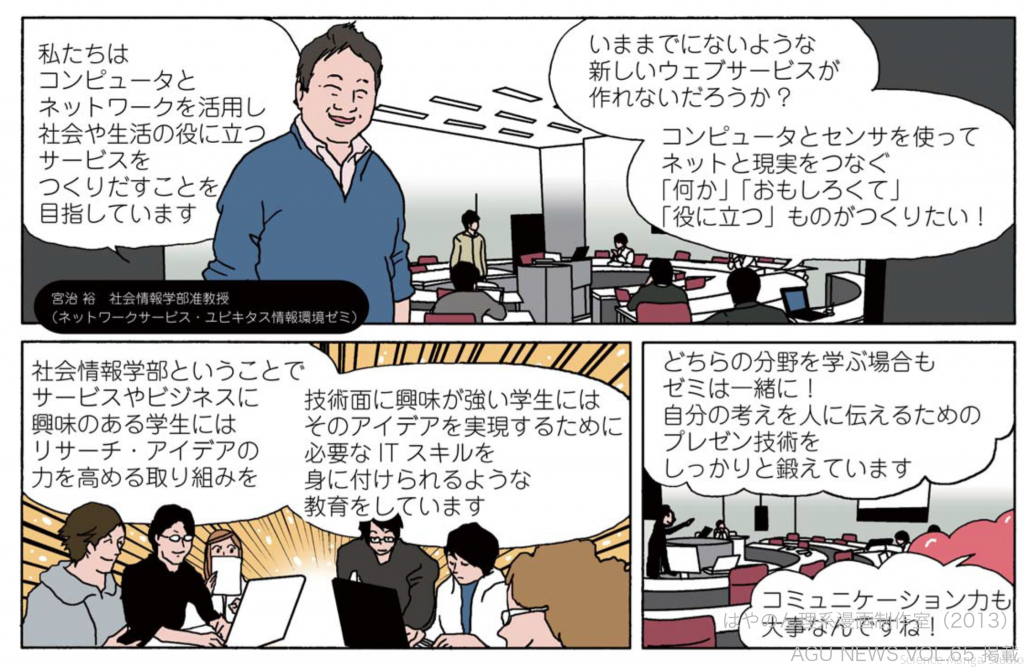 2013年1月31日発行。青山学院大学の大学広報誌「AGU NEWS」のVOL.65 (2013年1~3月号)に漫画を提供しました。