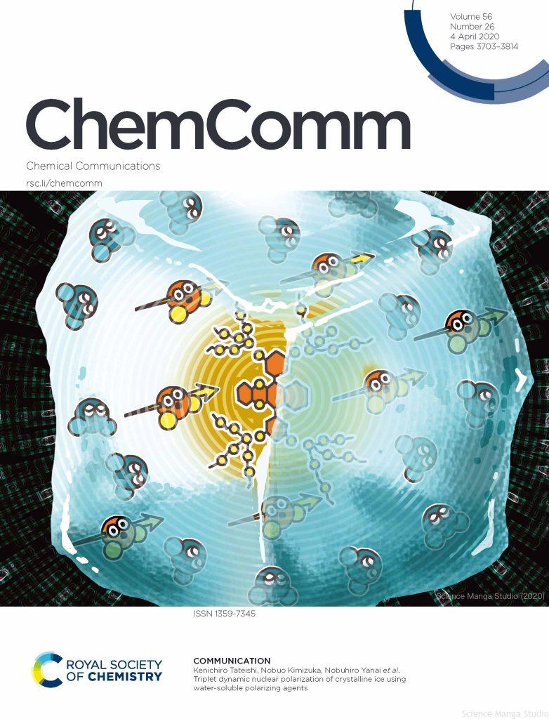九州大学大学院工学院応用化学部門 楊生伸浩准教授らによる研究成果をイメージする絵がChemical Communications 2020, Issue Vol.56 Number 26 のInside front coverとして掲載されました。